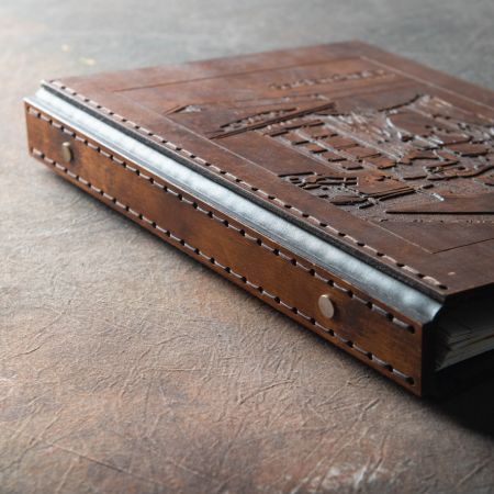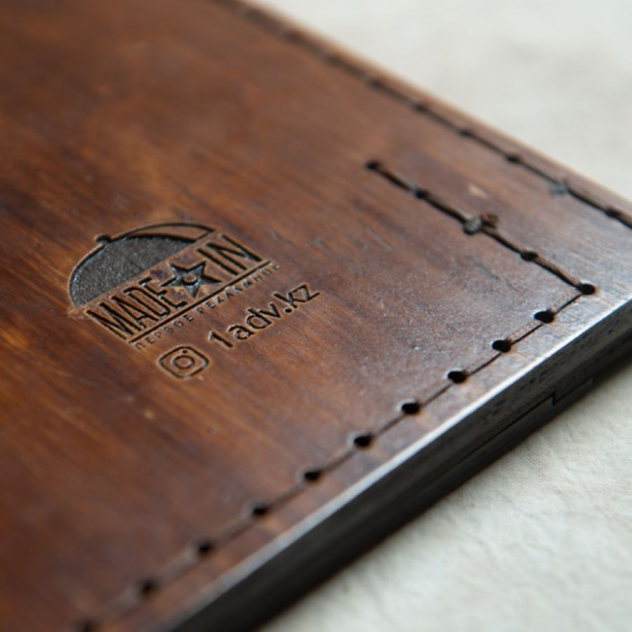 Неотъемлемым элементом такого чекхолдера является гравировка. Дизайн индивидуален. Покрытие- экологичная краска и лакирование. Детали и кармашек выполняются из натуральной телячьей кожи.