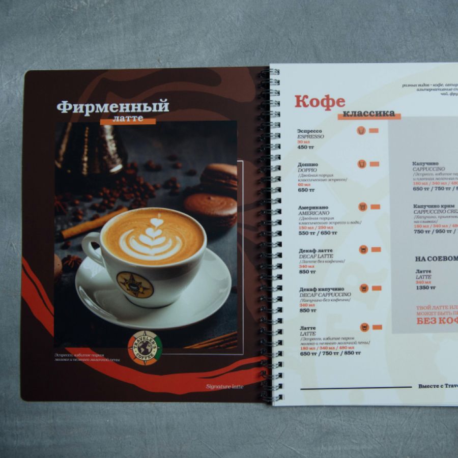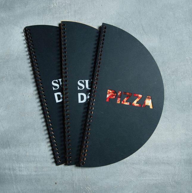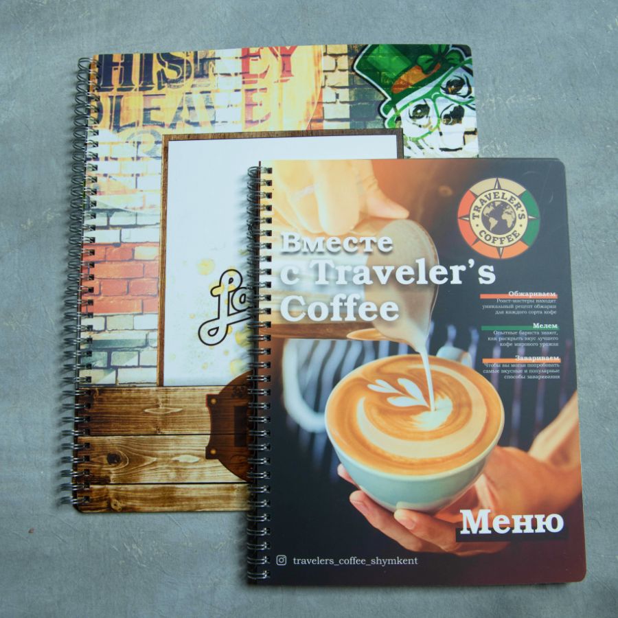 На наш взгляд недооцененный вид меню. Очень недорогое в изготовлении, меню на пружине смотрится стильно! Ламинирование листов делает такое меню прочным и оно долго служит. В этом виде меню, как и в любом другом, многое зависит от дизайна. Наши специалисты подходят к разработке креативно и меню получается нестандартным и удобным.